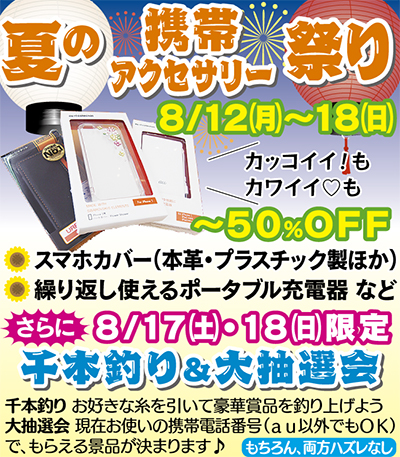 携帯アクセ〜50%オフ もれなくあたる抽選会も