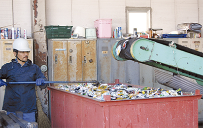 資源物の選別も手掛ける。特に小型家電や鉄といった不燃物の選別は、多くの同業組合が機械を用いているなかで、手作業で行っている。「昔から変わらない作業。乾電池の一本だって拾えます」と上原代表理事は誇らしげに語る。こうした丁寧な選別が、座間市が推進するごみ減量化と再資源化を支えているという。