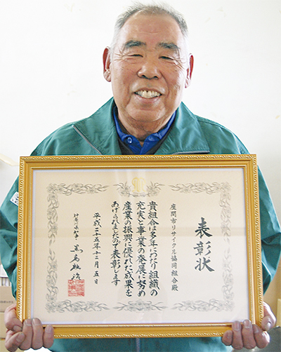 優良組合やその役職員を称える「神奈川県優良組合及び優良役職員表彰」がこのほど発表され、資源物の再資源化に貢献する「座間市リサイクル協同組合」(上原晴雄代表理事/小松原)が、市内の団体として唯一選ばれた。12月5日には県庁で表彰式が執り行われた。
