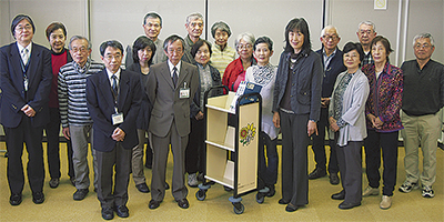 座間図書館ボランティア友の会(遠藤春海会長=写真・前列右から4番目)が4月9日、座間市立図書館で寄贈式を行った。