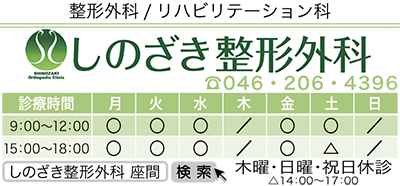 これまで1000件を超える手術の執刀経験を持つという篠崎勇樹院長が、関節痛や手足のしびれ、神経痛にリウマチなどの慢性疾患から交通事故、骨折・捻挫・切り傷などの外傷、労働災害などを治療する。
