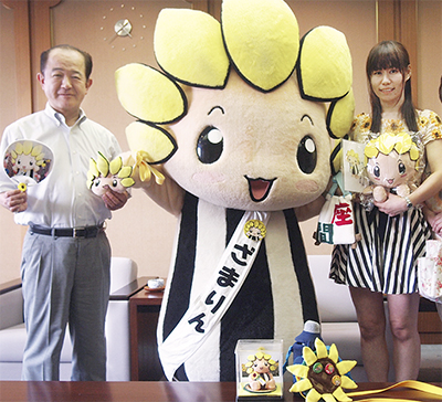 座間市が7月25日、市公式マスコットキャラクターのざまりんに、手作りのポシェットやワッペンなどを数多くプレゼントしたとして、入谷在住の吉川詠子さんに感謝状を贈った。ざまりんも駆けつけ、吉川さんに感謝の気持ちを伝えた。