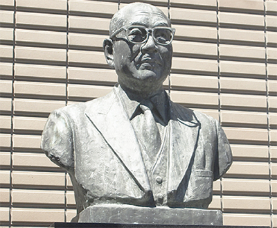 戦後の混乱期、入谷に医院をかまえ、生活に困窮する人々の治療に奔走した故・庵(いおり)政三さん。その功績を称えようと、1972年に旧市文化福祉会館(現/市消防本部敷地内)に建立された胸像が、市民健康センター前に移設され、8月10日に除幕式が行われた。