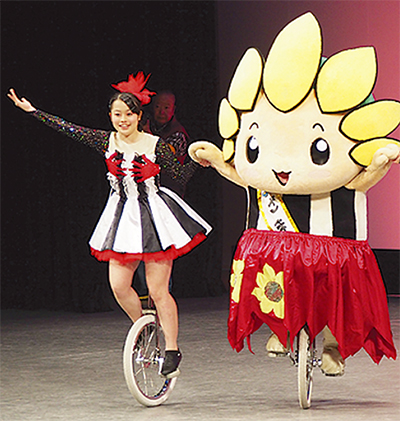 ざまりんは2011年に誕生したひまわりの妖精。昨年の同GPでは全国1580体中35位につけたざまりん。今年は更なる高みをめざし、過去最多1663体の頂点をめざして市民にPRを行っている。