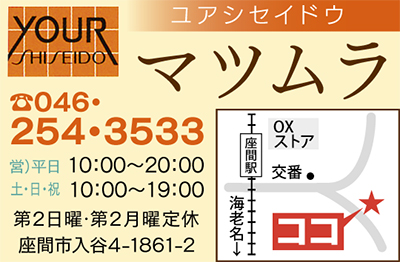 「1回で違いが実感できる」と人気なのが座間駅から徒歩2分のユアシセイドウ マツムラのベネフィーク超音波エステ。超音波だからこそ、表情筋をしっかり鍛えフェイスラインをリフトアップ。1回40分のコースなのに、顔のマッサージ・マスクだけでなく、ハンドマッサージや肌を温めながら化粧品の成分効果を浸透させる温感マッサージなど充実した内容。利用者からは「小顔になったと家族に言われた」「お肌に透明感が出てワントーン明るくなった」「肌のもちもち感がアップした」など喜びの声も多数。効果を実感して姉妹や友達と通う人も。施術後はライトメイクもしてくれるので手ぶらでOK。今なら初回お試し2千円オフなのでぜひ。また心地よいハンド技術で老廃物を排出、つややかな肌へ導くリンパマッサージ(マスク付)もお勧め。本紙を見たといえばスキンケアサンプル進呈中なので、気さくなスタッフの笑顔あふれる同店で、小顔&美肌を手に入れて。