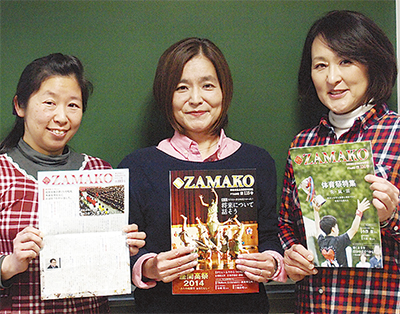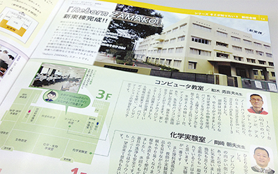 同校は、銀賞に値する(一財)県立高等学校安全振興会賞を受賞した。作品は11月発行の「ZAMAKO PTA会報 第115号」。A4版オールカラー・16頁構成で、創作舞踊部の文化祭での演技写真が表紙を飾る。特集は、1年前から構想を練ってきたという「なりたい自分は見つかった?将来について話そう」。進路ついて、生徒と保護者およそ1100人に実施したアンケート調査結果をまとめた。さらに、社会で働く4人の卒業生のインタビュー記事も掲載。神谷充子副委員長が「書き上げたら1万字になって。何とか1千字に短縮しました」と話す力作だ。シリーズ「そこが知りたい」では、昨秋に使用開始した新東棟の潜入レポートを載せるとともに、同校出身の教師2人を、当時の写真付きで紹介した。