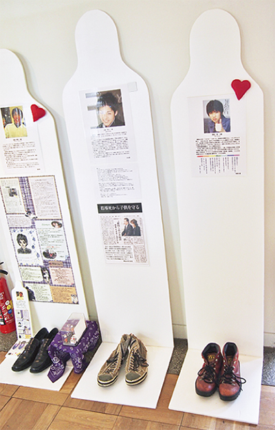 各地を回るうちに、鈴木さんに共鳴する遺族は増え続け、今では「160命(めい)」のメッセンジャーが集まった。息子・零さんのものは、来場者を最初に迎える廊下の一番手前にそっと置かれている。