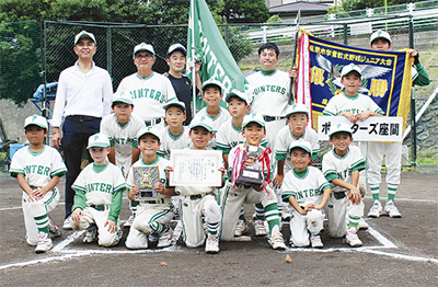 小学校4年生以下の野球少年たちによる「座間市春季学童ジュニア大会」の決勝戦が6月27日、栗原遊水地のスポーツ広場で行われ、入谷小学校などで活動するポインターズ座間(大沢信一郎代表)が、同大会で初優勝に輝いた=写真=。