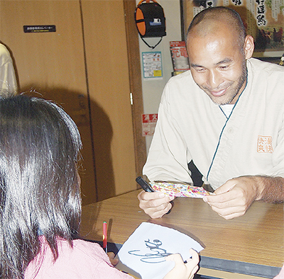 元サッカー日本代表で現在はSC相模原に所属する高原直泰選手が8月28日、市内広野台の湯快爽快ざまを訪れ、ファンとの交流を深めた。