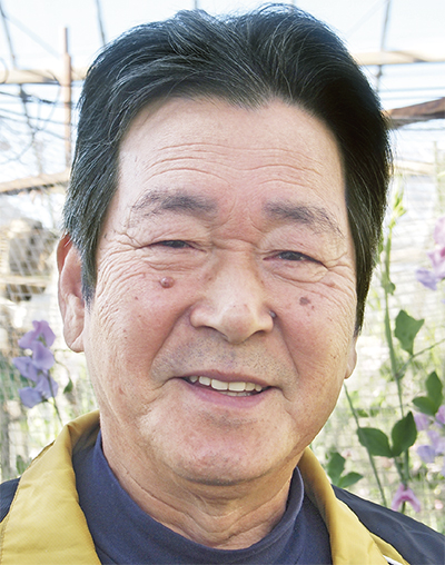 ○…農業を営む家の三男として生まれる。農業高校や県の研究施設で勉強を重ね、20歳でバラの生産者として一歩を踏み出した。今は「大きな支え」という妻と二人三脚で、スイートピー栽培に取り組んでいる。「好景気の恩恵に預かるのは遅い。不景気の影響を受けるのは早い」。趣味の品とも言える花の消費は、景気に大きく左右される。組合ではこうした状況を打破するため、市民、特に子ども達に植物に親しんでもらおうと「花育」を推進。市緑化祭りなどで、フラワーアレンジメント体験会を開催する。「参加者も多くて盛況。子どもの作品は個性豊か。教えていて楽しいですよ」と話す。