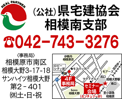 「ハトのマーク」でおなじみ、(公社)県宅地建物取引業協会相模南支部(大塚亮一支部長)主催の講演会が7月8日(金)、小田急ホテルセンチュリー相模大野(相模大野駅ビル内)8階「フェニックスI」で開催される。時間は午後3時から4時30分まで。参加無料。