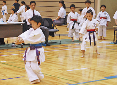 市総合体育大会の一環として、市空手道連盟が主管した催し。未就学児から社会人まで延べ1000人ほどが出場し、組手や形で日頃の鍛錬の成果を競った。形競技では子どもたちがキレのある演武を披露し、会場から拍手が起こっていた。
