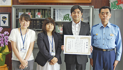 春田署長から感謝状を受け取った大澤支店長は「お客様の大切な財産を守ることができて良かった。これからも被害防止に努めます」とコメント。春田署長は「詐欺の手口が巧妙になるなかで、金融機関は最後の砦ともいえる存在。今後もご協力いただければ」と呼びかけていた。