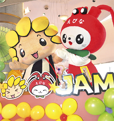 座間市のマスコットキャラ・ざまりんと、海老名市のイメージキャラ・えび〜にゃがコラボレーションする「キャラJAM(ジャム)」が12月3日、D&C!座間市役所店で開かれ、約200人が訪れた。