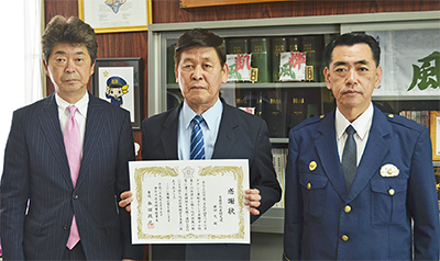 春田政之署長から感謝状が手渡されると、横田さんは「ここまで大ごとになるとは思わなかった。被害が無くてよかった」と話した。