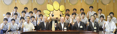 表敬訪問では、24人の部員(1人欠席)が遠藤市長に自己紹介をした後に歓談。座間市マスコットキャラクター「ざまりん」も同席し、競技の動きを真似るなどして場を和ませた。