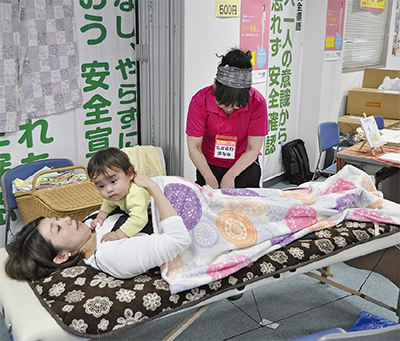 座間コップは、市民有志による子育て支援グループ。イベントでは、ベビーマッサージやマタニティ情報コーナー、ベビーサインなど子育てに役立つブースのほか、ライフプランニングや防災コーナーなど生活に役立つコーナーなどが設けられ、会場には親子で訪れる姿が見られた。