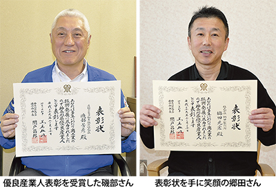 今年は県内17の商工会から33人が受賞。横浜国際ホテルで先月、表彰式が行われ、市内から選ばれた2人も表彰式に出席した。