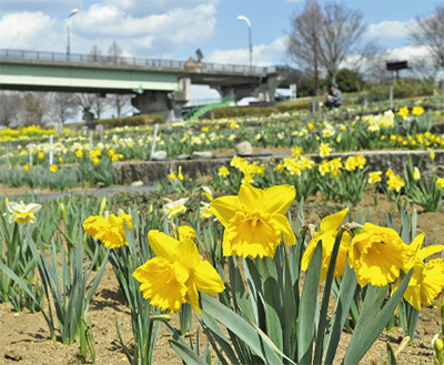 また、3月、相模川沿いの西洋水仙花壇が完成した。市民団体「花を咲かそうボランティアの会」(野島誠一郎会長)が手がけたもの。4月上旬まで開催された相模川水仙まつりで、70品種10万本の色鮮やかな水仙がお披露目となった。