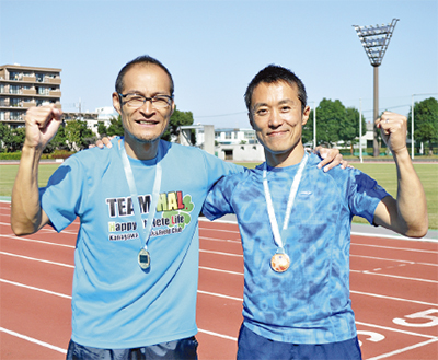緑ケ丘在住の水口政人さん、相模が丘在住の宮本義久さんは10月、国際・第38回全日本マスターズ陸上競技選手権大会の100m走に出場。水口さんは40歳から44歳までのM40クラスで、宮本さんは45歳から49歳までのM45クラスでそれぞれ優勝した。水口さんは4×100mリレーでも神奈川県チームのアンカーとして出場し、チームの大会3連覇に貢献。宮本さんは部門最年長ながら大会新記録を更新した。