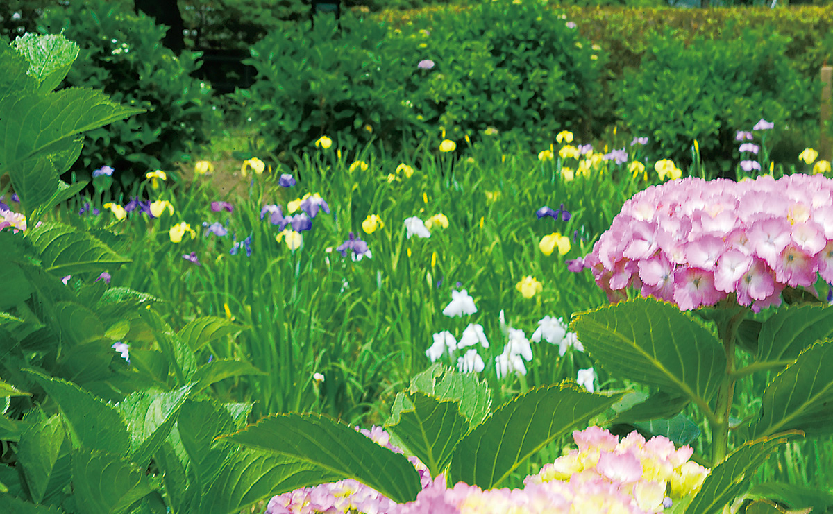 アジサイとハナショウブは地元有志ら30人ほどが手入れを行い月一回の草取りや葉の剪定、株分けなどを行っている。