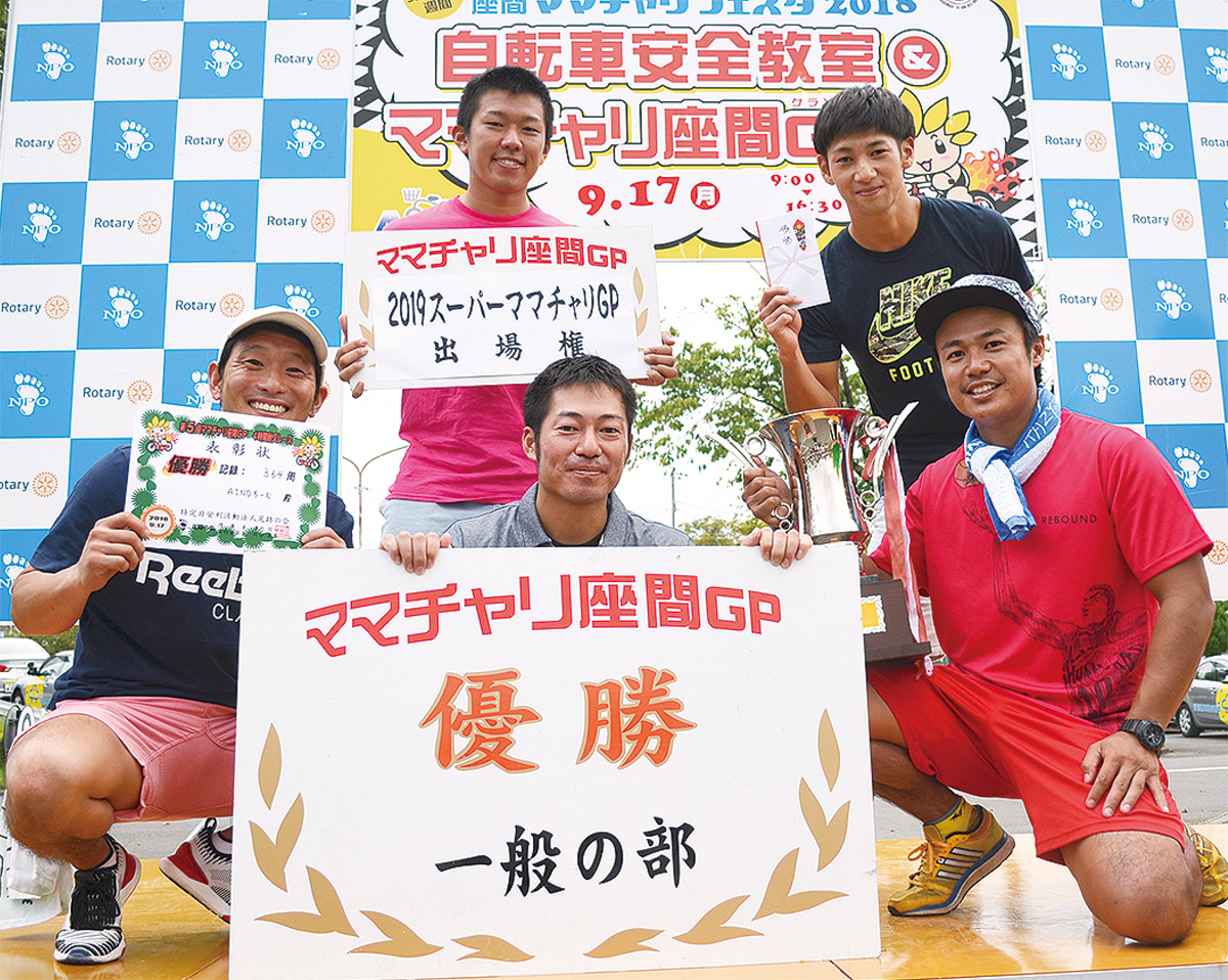 自転車4時間耐久レース「ママチャリ座間GP(グランプリ)」(NPO法人足跡の会主管)が9月17日、都南自動車教習所で開かれ、AINOちーむが初優勝を飾った。変速ギア無しの「ママチャリ」にこだわり、5度目の出場でつかんだ栄冠。同チームは来年、富士スピードウェイ(静岡県)で開催されるスーパーママチャリGP2019への出場権を手にした。