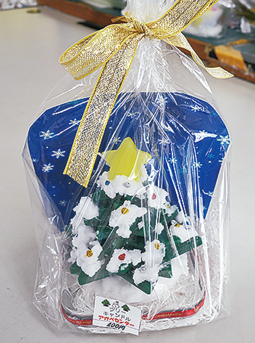 小松原にある障がい者の就労支援事業などを行う「アガペセンター」の利用者たちが、クリスマスのキャンドルづくりに精を出している。