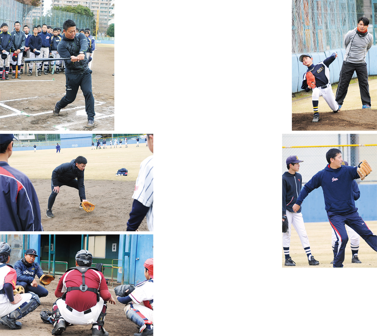 指導を受けたのは市内6校の中学校野球部員約80人。生徒たちはポジションごとに分かれてキャッチボールや守備練習を開始。元プロ野球選手たちが指導するのは、とにかく「基本」。ボールを捕る・投げる姿勢、ステップの方向、足の運び方など野球の基本を繰り返し指導していた。