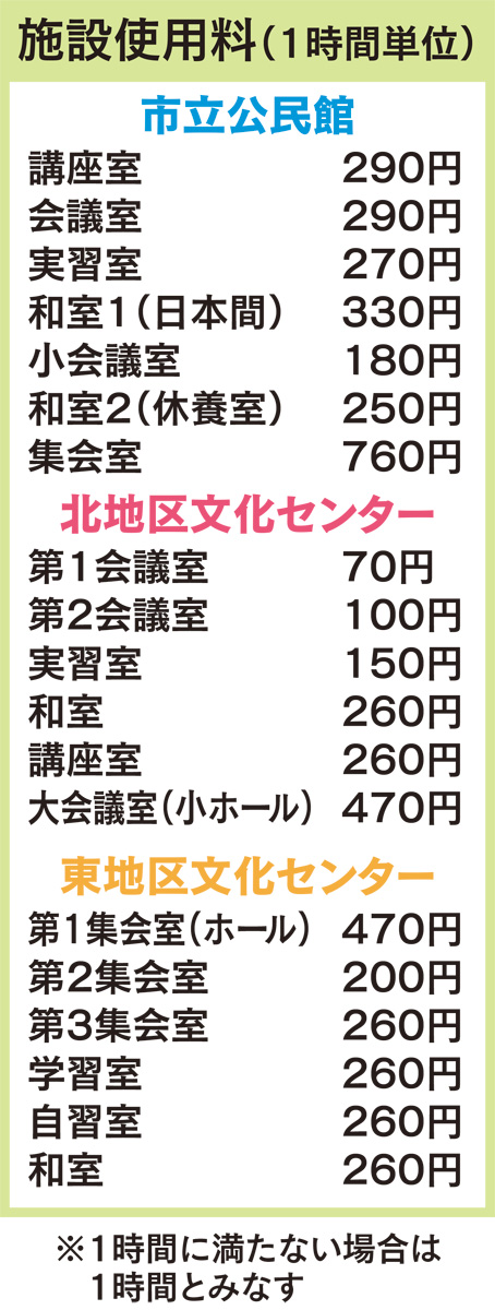 対象となる施設は、市立公民館、北地区文化センター、東地区文化センターの3館。