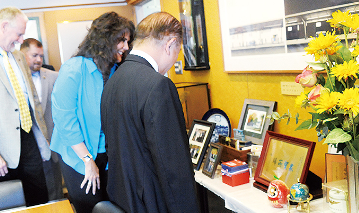座間市と姉妹都市である米国テネシー州スマーナ市は、互いの中高生が両市を訪れる交流事業を実施している。国際姉妹都市の提携を結んだのは1991(平成3)年。当時、座間青年会議所や座間市商工会青年部で活躍していた遠藤三紀夫市長は30年前、提携に向けた使節団の一員としてスマーナ市へ訪れていた。その時にホームステイしたのがリード市長の実家だった。遠藤市長は「とてもよくして頂いたのを今でも覚えています。リード市長はそのころハイスクールで、チアリーダーで活躍していたよ」と懐かしそうに話す。