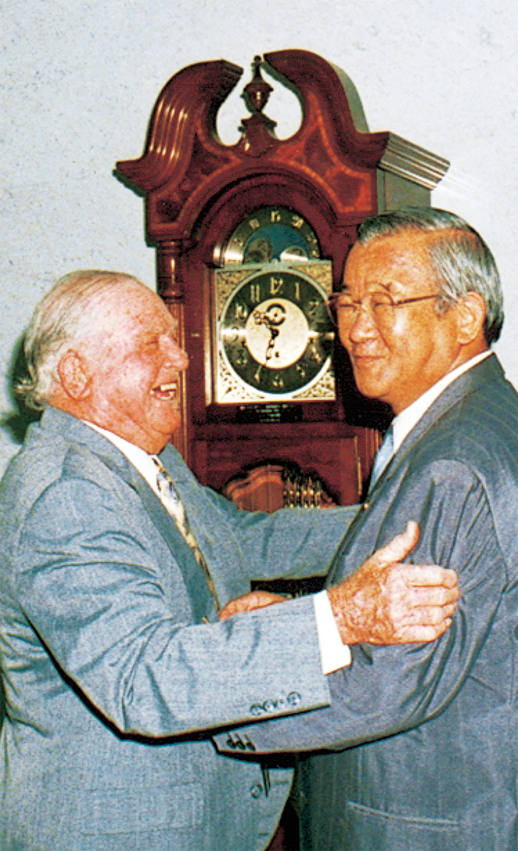 リー・ビクトリーさんは1999年に相武台南口商店会の招きで来座し、時計の点検も行い「問題ないよ」と笑顔で話していた。