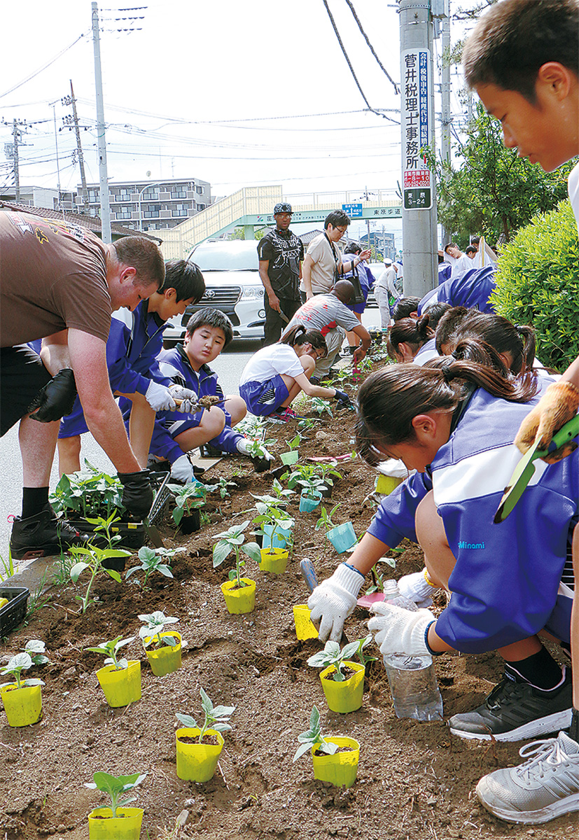 少年サッカーの選手は「今日、サッカーしたかったけど、花を植えるのもいいかも。どんな花が咲くか楽しみ」と笑顔で話していた。