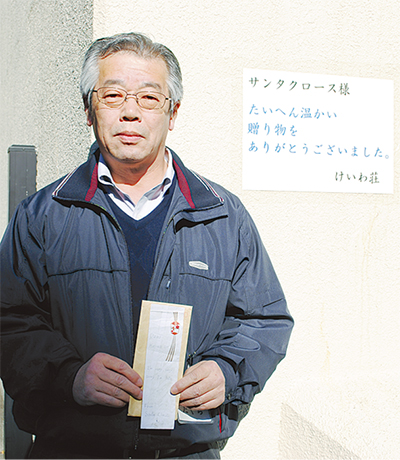 「大変温かい『贈り物』をいただき誠にありがとうございました。サンタクロース様のお気持ちを酌み、高齢者の福祉増進のために大切に使わせていただきたいと思います。まずはお礼まで」