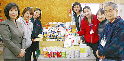 女性だけのフィットネスクラブ「カーブス厚木中町」((株)ロビンフッド/桐生英子代表取締役)が3月5日、障害者の自立支援を行っているNPO法人厚木あすなろの会第一作業所(横見守明所長)に、食料品約80kgを寄贈した。