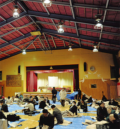 厚木市では帰宅困難者の宿泊先として、市内の一部小中学校体育館やヤングコミュニティセンターなどの公共施設7カ所を開放。約350人が身をよせ一晩を過ごした。
