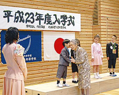 同校の内田文江校長は「学校でたくさんの不思議を見つけて下さいね。今度、一緒に探検に出かけましょう」と新入生に優しく語りかけた後、保護者にお祝いの言葉を述べた。