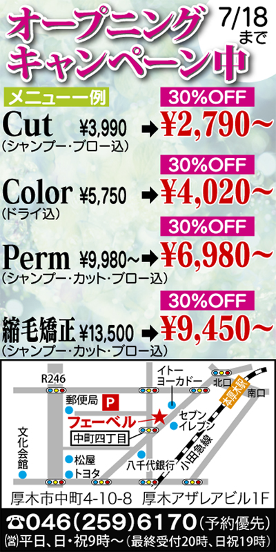 本厚木駅徒歩5分・P完備 癒しのヘアサロン
