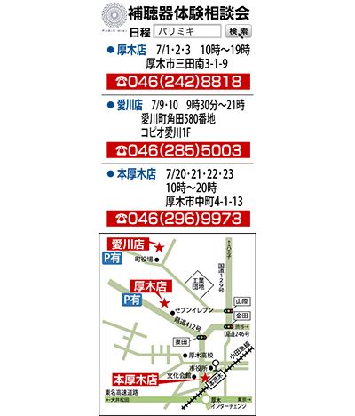 海外12か国222店舗、国内952店舗の安心ネットワークを誇る「パリミキ」。7月に厚木・愛川の3店舗で補聴器の体験相談会を行う(要電話予約。予約状況により当日でも対応可能)。