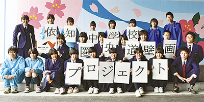 依知中学校(中野浩校長)の全校生徒384人が3月7日、(仮称)圏央厚木インターチェンジ付近のカルバートボックスを訪れ自分たちで描いた壁画を見学した。