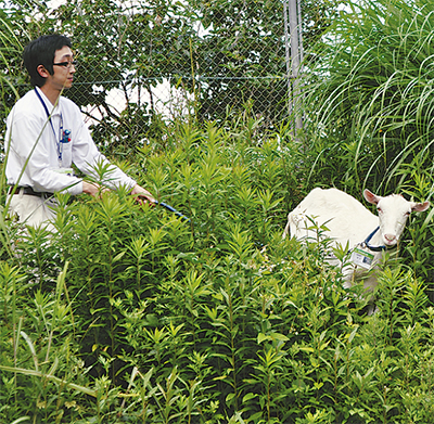 鳴き声が心配されていたが、今のところ周辺住民からのクレームはゼロ。約2カ月が経ったが3頭は有毒植物を本能的に回避し、暑さも気にせず元気いっぱいの様子。糞尿は無臭、繊維質で土に変わる。3年程度で雑草群落を芝に変えた実績もあるので活躍が期待されている。