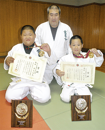 厚木市柔道協会に加盟する「愛柔会」(藤崎淳文代表)の関野進吾君(市立南毛利小5年)と藤島将太君(愛川町立中津第二小5年)の二人が、8月に鹿児島県で開かれた全国小学生学年別柔道大会で優勝した。