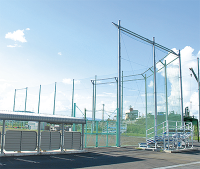 球場内は高さ2mの防球フェンスで囲まれている。このうち内野の外周には高さ15m近くの防球ネットが設置されているが、外野部分はフェンスのみ。打球の行方によっては堤防道路や近隣の民家、併設する駐車場に影響を及ぼしかねない。そのため市では硬式球の使用を禁止し、軟式またはソフトボールのみの利用としている。
