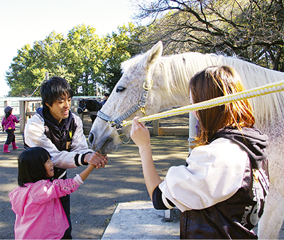 このイベントは、同大学が今年初めて主催し、今回で2回目。当日は農学部バイオセラピー学科の土田あさみ准教授と、研究室の学生有志19人が、参加した児童15人に馬や犬、ウサギの飼育方法を教え、ガーデニング体験を行った。