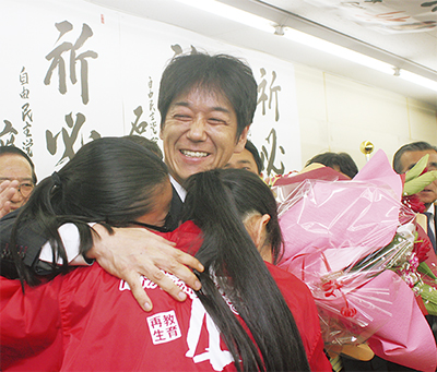 一方、「義家氏、当確」の速報に、市内中町の後藤氏の事務所からはため息が漏れた。後藤氏は支援者に挨拶し、事務所を去った直後に「比例区当選確実」の一報が入った。後藤氏はすぐに事務所に戻り「天は見捨てませんでした」と涙をぬぐいながら声を張り上げた。「再び国会で、そして地元でも皆様と共に働かせて頂きます」と加えた。