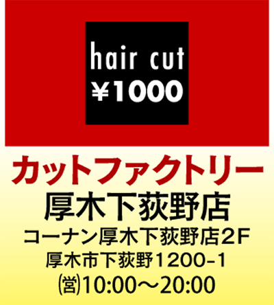全国117店舗展開中。「たった1000円で思い通りのヘアスタイルになる」と女性を中心に人気のカット専門店「カットファクトリー」。このカットファクトリーが厚木に初出店。本日3月1日にオープンする。場所はコーナン厚木下荻野店2階。駐車場完備、キッズチェアもある。