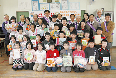 4月19日、厚木中ロータリークラブ(藤川孝幸会長・会員数46)の会員有志10人が創立35周年記念事業の一環として子どもたちに図書を贈るために福島県会津若松市河東にある旧河東第三小学校を訪れた。