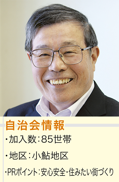 小鮎地区の連合会長を兼任。近隣自治会とともに「子ども安全見守り隊」を結成し、毎朝、近隣小学校の校門の前に立って、交通整理や挨拶運動を行う。「子どもたちが成長してたくましくなっていく姿を見られることが嬉しい」と顔がほころぶ。