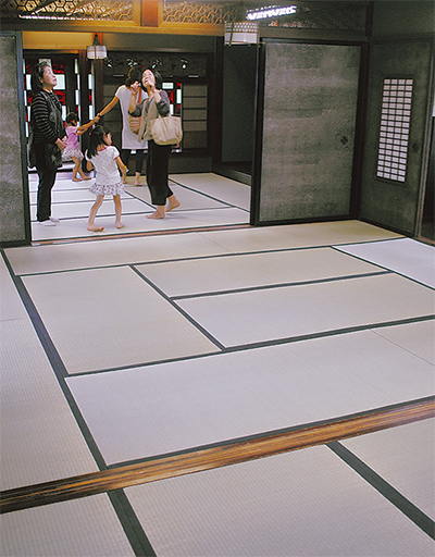 佐藤社長によれば「国産のい草を使った畳なので、使ううちにあめ色に焼けていきます」とのこと。岸邸のスタッフも「新しい畳の匂いがいいですね。来られた方も喜んでいます」と話した。