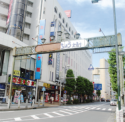本厚木駅北口にある厚木なかちょう大通り商店街振興組合(六ヶ村健三代表理事)のアーチ。1月の強風で看板の一部が破損してしまったが、国の「商店街まちづくり事業」を活用し、年内にも新装されることが分かった。