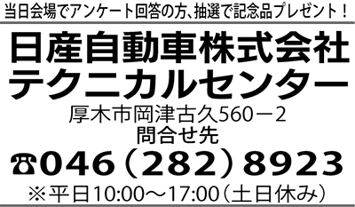 この機会に日産の技術と日産車の試乗体験をしてみては。時間10時〜15時(雨天実施)